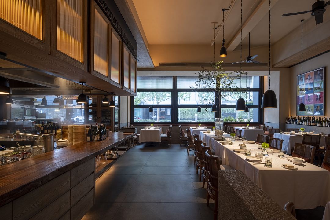 馆虽小,但在空间布局上却颇为讲究。一层公共餐区的餐桌集中在空间一侧,紧密却不局促,旧时街边排挡的亲近与放松,在这里充分显现。盘一季好食,邀三五好友,一张小桌便足矣。如遇大型聚会,小桌便可自由组合成多人模式,满足不同的用餐需求。