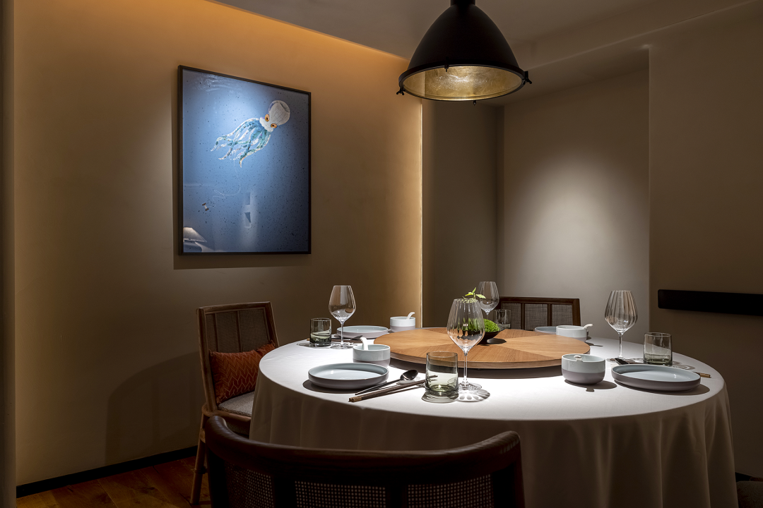包间内的圆桌更有“凝聚”之意。为匹配食物本身的纯粹,空间去除掉一切装饰,转移到味蕾与内心的永恒。味道带着记忆,穿梭于时光之中,青葱岁月的闪光片段交汇在一起,旧友新朋,共赴一场真挚的相聚。