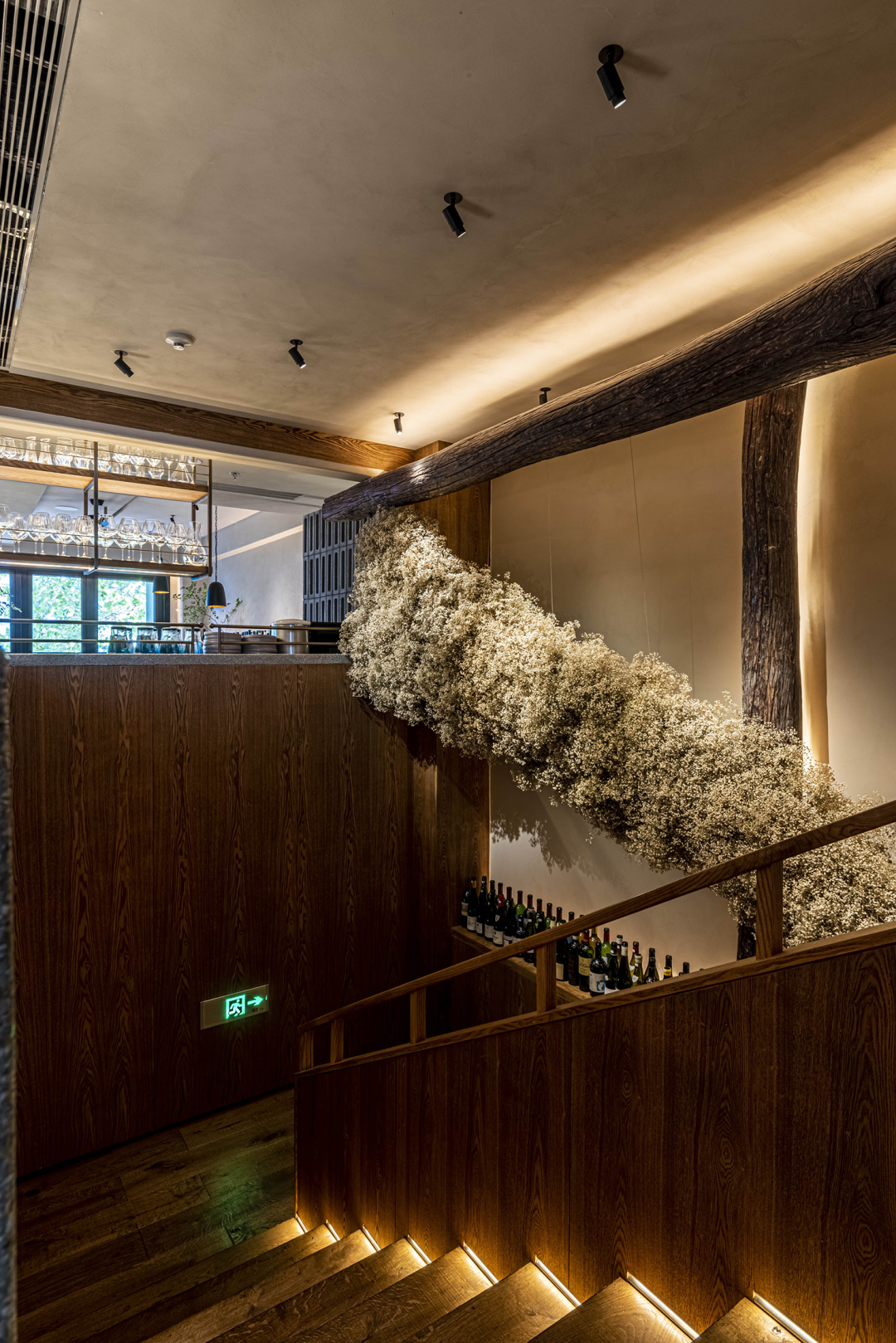 相较于公共区域的热闹,二层区域则更像是另一处“藏心之地”,延着繁花而上,色彩与材质变得更为纯粹,灯光也更为聚焦,在空间尺度与感知上力求平衡。