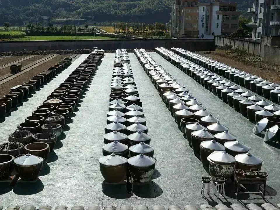 白天,打开酱缸,太阳的曝晒使缸中的微生物迅速发酵;夜晚,温度降低,酱味受冷凝缩,吸收空气中露水的精华。