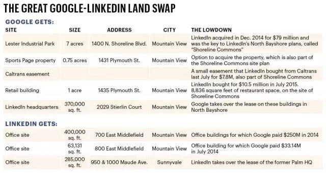 说来也巧,那时LinkedIn也在寻求总部扩张,他们看中了Google有的一块地。2015年,在 Linkedin的一个咖啡吧里,双方的负责人坐下来,聊着聊着,交换的想法就出来了,具体交换的内容与条件,差不多又进行了一年,直到2016年7月,Google靠着和Linkedin 置换土地才获得了足够的地皮。