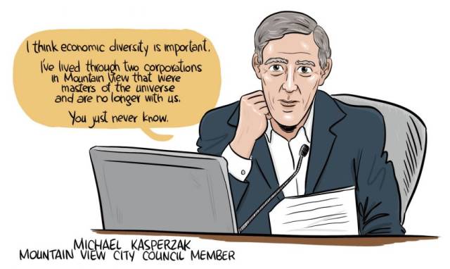 “我觉得经济的多样性对于整个城市发展来说是最重要的,我们才不想作为一个“公司城市”,多样性对我们非常重要,这是再多的公园,再多的自行车车道都换不来的。山景城的“公司霸主”已经换过好几个了,你根本就不能预测未来将怎么样,如果没有多样性,城市发展规划就会一团糟,所以我们需要在这个方面非常非常谨慎。”