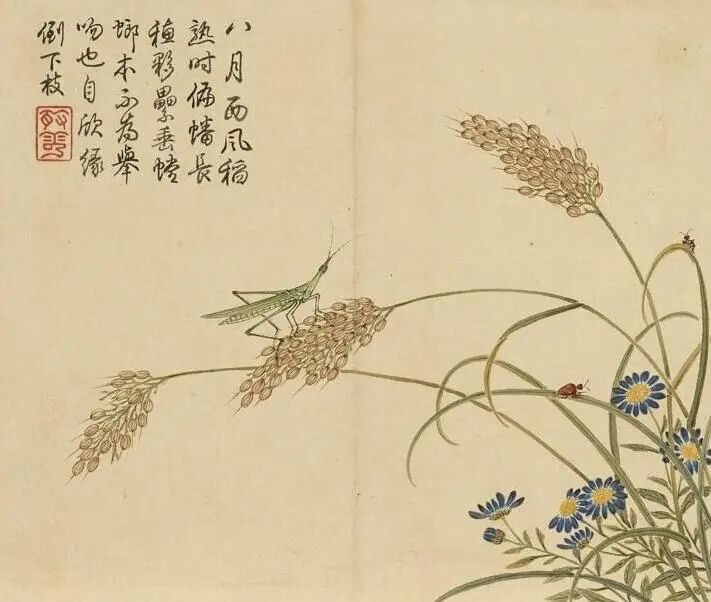 清 杨大章 花鸟册 稻穗螳螂 台北故宫博物院藏