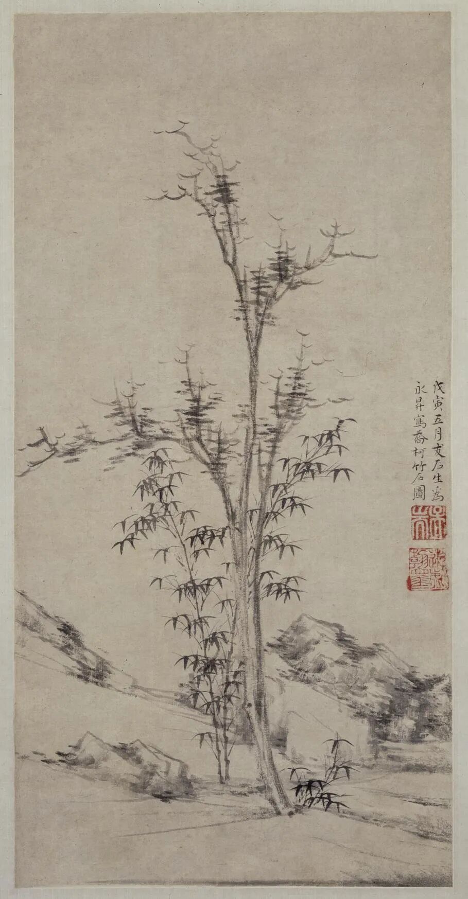 明   王绂   乔柯竹石轴   232×57cm
