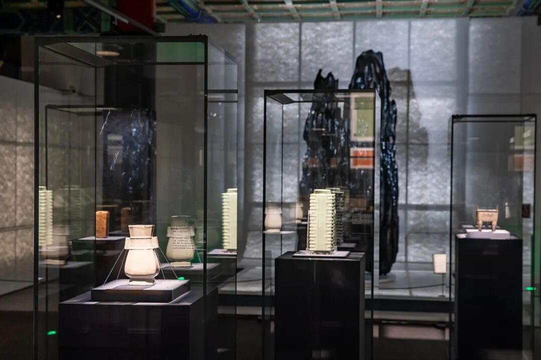第一单元主题为“委怀琴书”,分星空、五经萃室、图书、文房四宝、文人赏器五个空间。该单元以五经萃室和五经图书为核心,突出书房不仅仅是一个看书、写作、藏书的空间,也是一种情怀和传承。星空部分,将天上的壁星和地上的鲁壁联系起来,仰望星空,拓展对书房文脉的思考和对书房空间的想象。展出的文房四宝,突出它与文人之间所形成的一种生态依赖关系,让人想到它们融为一体时所创造的极具中华民族特色的书法和绘画艺术。赏器部分,注重展示能体现天地大道的器物,如玉琮、青铜、五大宋瓷名窑等。