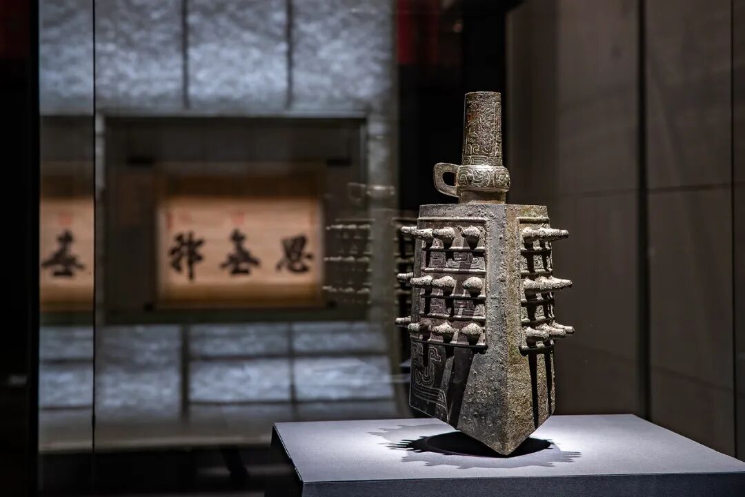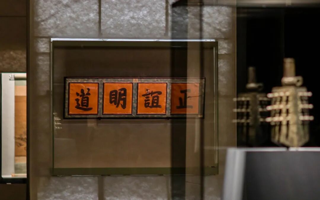 第二单元主题为“正谊明道”,主要展示的是家国情怀,突出书房的人文精神。在古代,读书的目的是“修身齐家治国平天下”,这一单元也分为修身养性、家国情怀和仰观宇宙三个空间。家国情怀部分,展示有南宋文天祥的宏斋帖卷、明代徐渭书“昼锦堂记”、陈淳书“岳阳楼记”等书法作品,突出“先天下之忧而忧,后天下之乐而乐”的思想,另外还有两件重器,一是大宝箴挂屏,二是虢叔旅钟,体现士人身处庙堂之上,要崇尚品德,坚守正义,以天下为己任,还要居之无倦,行之以忠,兼顾天下共达于善的家国情怀。