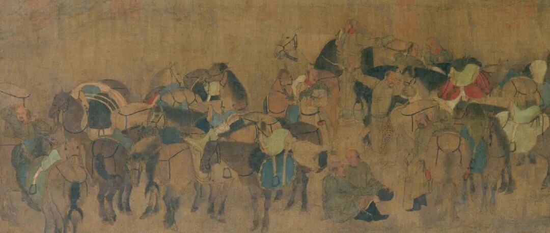 此图传为五代契丹画家胡瓌所画,胡瓌(生卒不详),居范阳(今属河北)。胡瓌与其子胡虔俱善画番部人骑,《宣和画谱》著录胡瓌作品65件,均已佚。此作经清初高士奇《江村销夏录》著录,后收入清高宗内府。