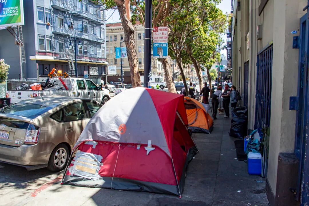 旧金山街头随处可见的流浪汉街景,这里大概有8000多人无家可归街头露宿