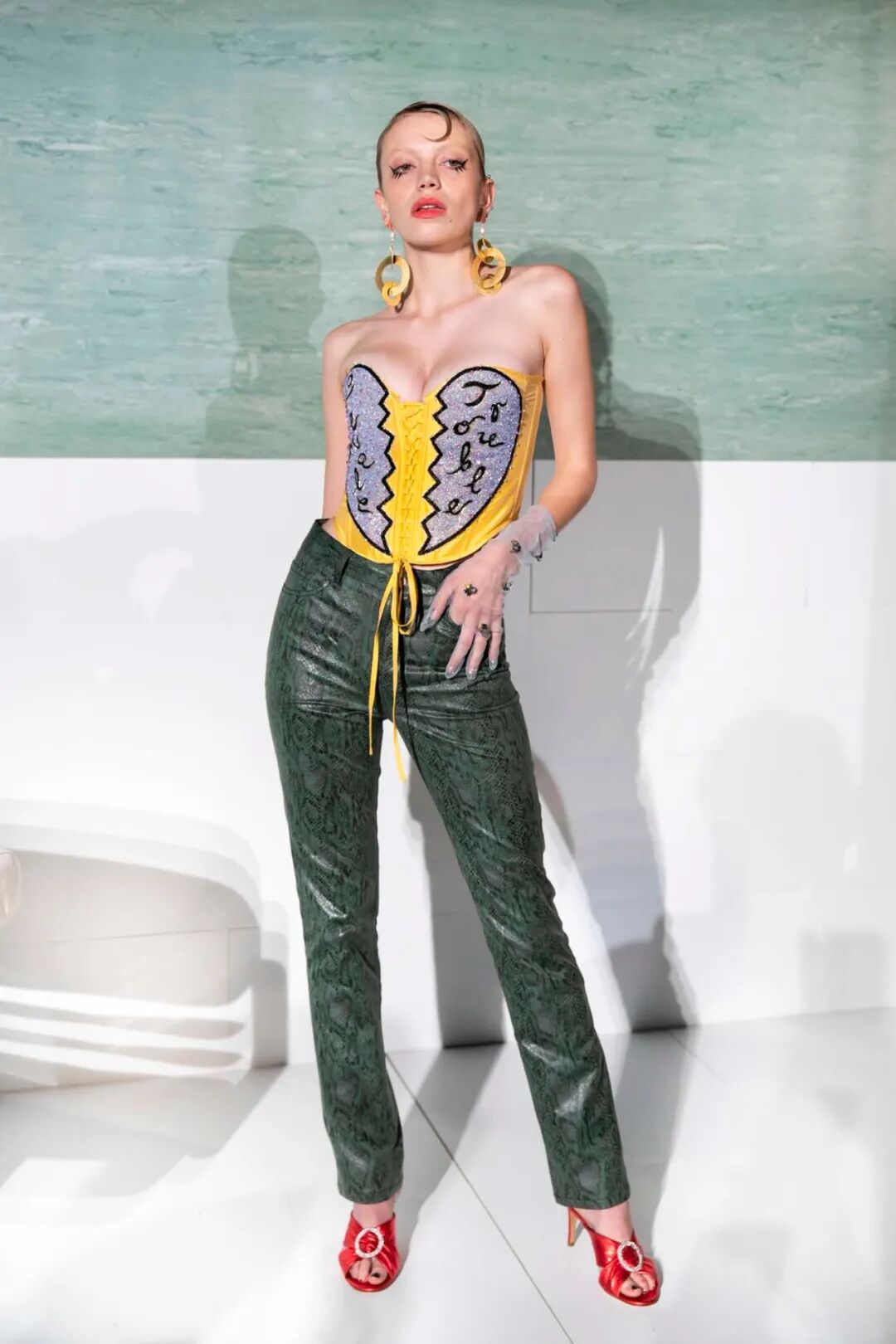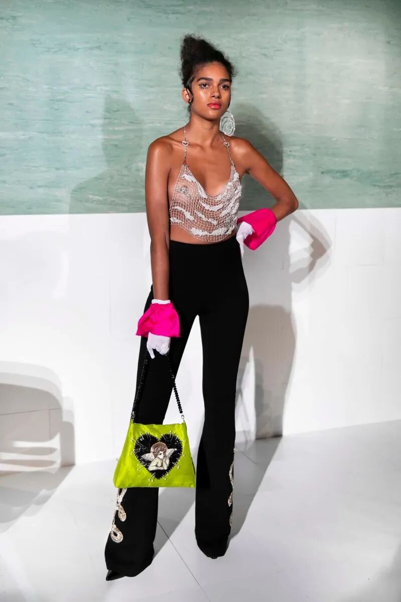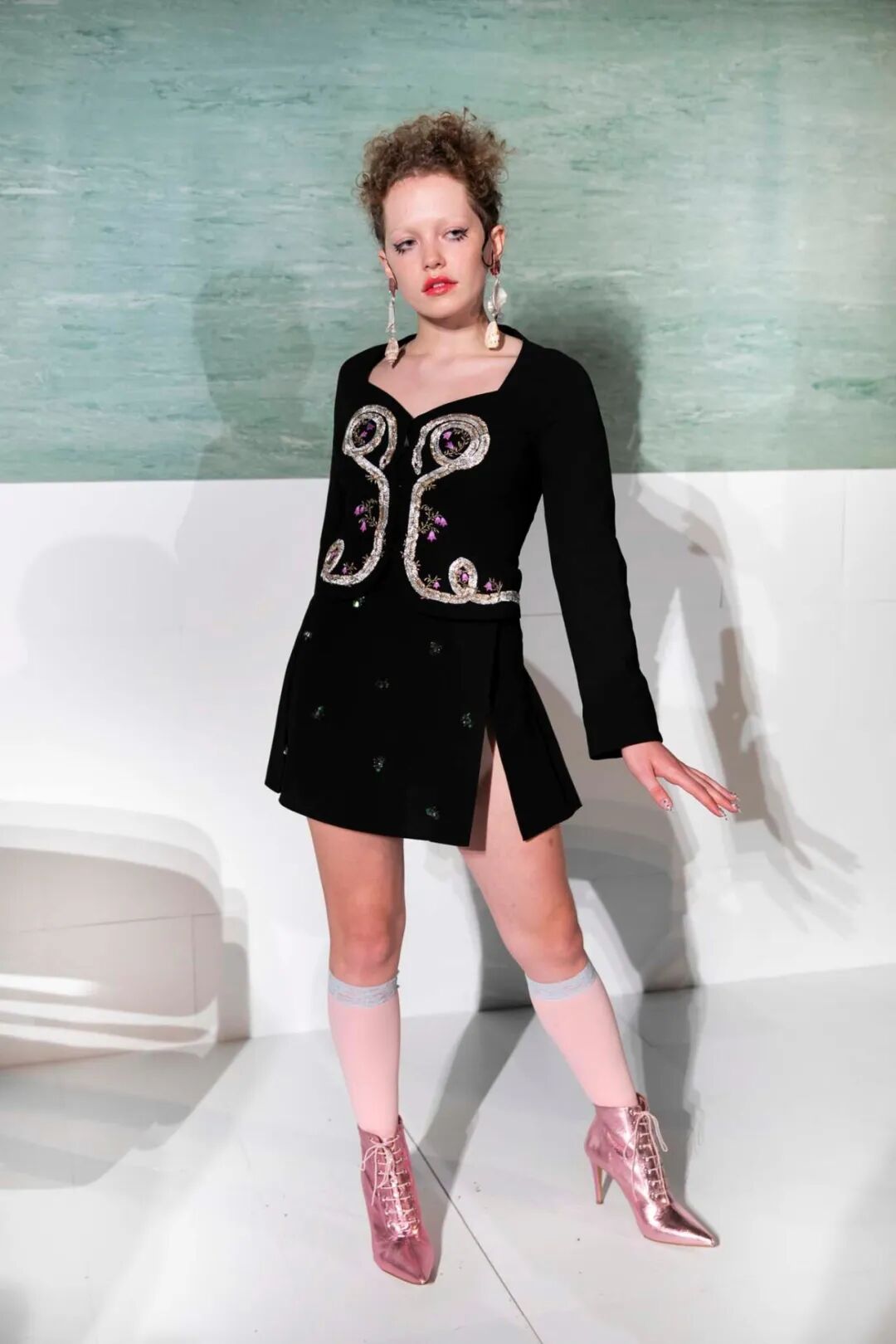Clio的设计风格非常独特鬼马,大胆绚丽的色彩和活泼少女感的轮廓搭配第一时间吸引人们的目光,同时通过错综复杂的装饰、刺绣、手绘印花以及服装呈现的潜在的幽默感可以一眼辨别是Clio Peppiatt品牌。