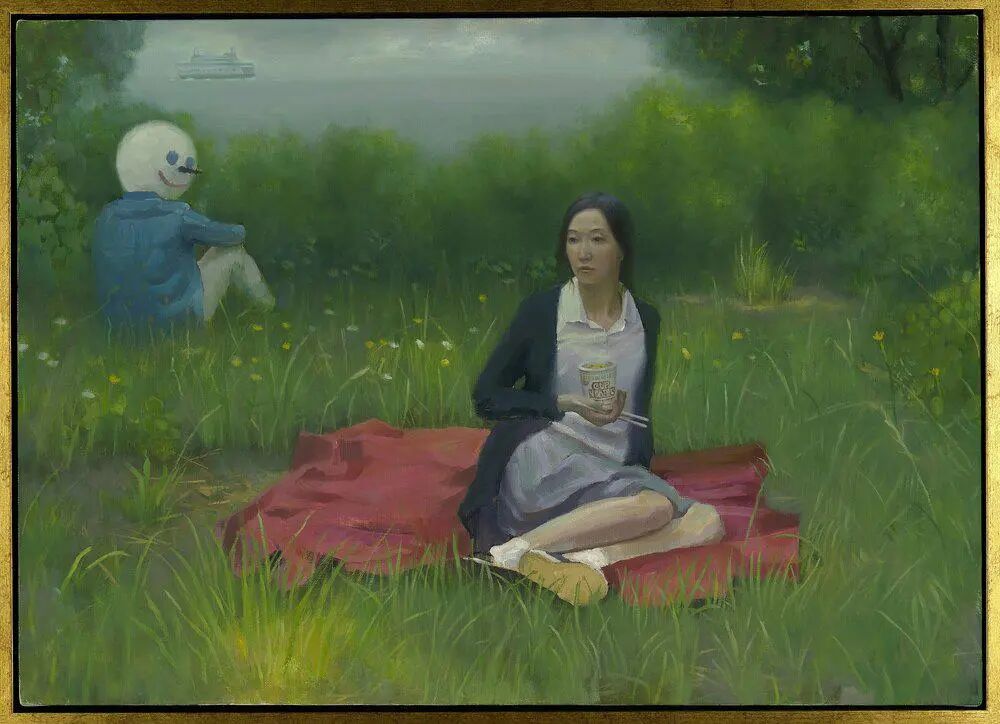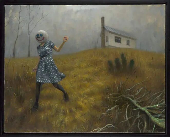 旅居美国的韩国艺术家古力根,就非常擅长以一种暗黑的基调,来描绘带有情绪的超现实主义画作,这些作品往往以女性为主角,画面带着一种神秘、悲伤、荒诞的气息,让人看完有一种匪夷所思的感觉。