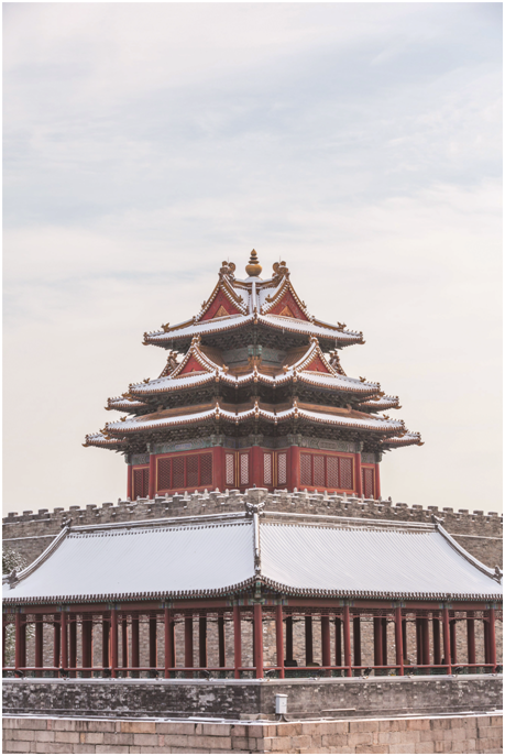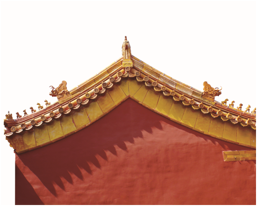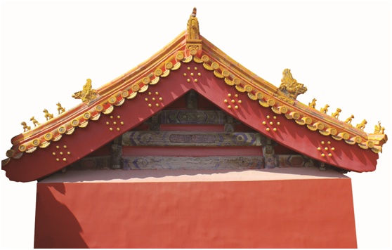 十字脊顶是由两个歇山顶或两个悬山顶在同一平面上呈九十度垂直相交而成,也叫四面歇山顶、四面悬山顶。典型代表有北京故宫角楼、江苏南京阅江楼、山东聊城光岳楼等。