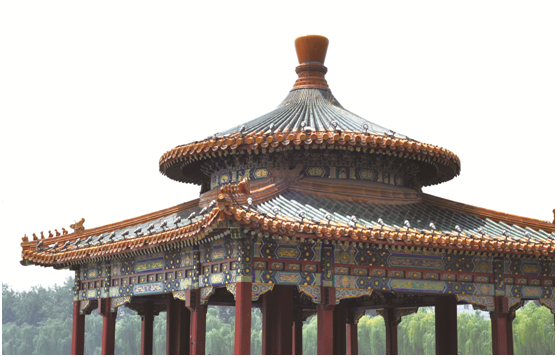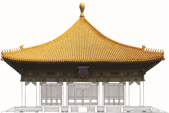 而圆形攒尖顶既没有正脊,也没有垂脊,屋顶坡面向上逐渐收拢,最后汇聚于宝顶处。