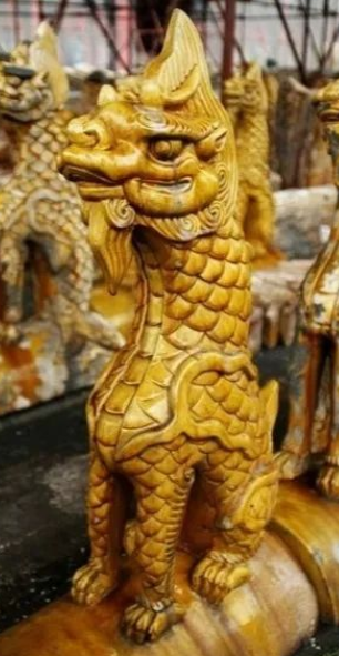 第七个是狎鱼。海中异兽,能兴云作雨,灭火防灾。把它装饰在殿顶的垂脊上,据说可以起到祛邪、避灾、祈福的作用。