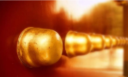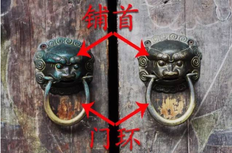 宫殿、庙宇厚重的木门上,都有一个金属兽头,嘴里衔着一个铜环,这叫门铺,也叫铺首。按照杨慎的说法,龙生九子之“九曰椒图,形似螺蚌,性好闭,故立于门铺首。”既然椒图性好闭,就用其所长,把它装饰在大门上,它会尽职尽责地守护好门户。铺首的形状一般是衔环兽面,常用金属铸成狮、虎、螭、龟、蛇等形。《汉书·哀帝纪》:“孝元庙殿门铜龟蛇铺首鸣。”颜师古注:“门之铺首,所以衔环者也。”宋高似孙《纬略·金铺》:“《通俗文》曰:‘门首饰谓之铺首。’”唐李贺《恼公》诗:“井槛淋清漆,门铺缀白铜。”