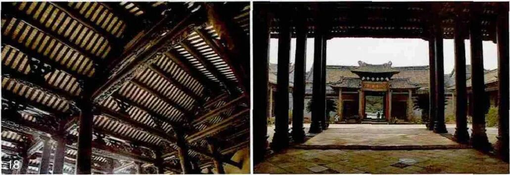 到中国古代晚期,有些乡村的木构建筑,如瓦屋铺设稀疏包括不用灰背,即使是祠堂建筑,堂宇高耸,仍然会用细柱及穿斗式,可以说岁月不留痕,仍然遵循的是千百余年前的技术合理与适用性原则和做法,这也是在湖南乡间考察时曾给我的很大触动(图17)。相反,在富裕的广府地区,即使是屋顶用“冷摊”(底瓦干摆,不设望板和泥灰)的做法而自重很轻,祠堂建筑却采用繁密的斗栱和柱梁,明显是等级的意识和审美的追求这些社会性因素,经年历代更多地发挥作用而为之(图18)。其实,这两种走向在当代建筑实践中,依然存有矛盾并有所体现:技术适用却忽略社会属性,抑或过度表征却超越技术需求。本文研究也是一个关于“技术社会学”的问题——技术和经济、文化、政治、日常社会应该是互为关联和相互配合的,是由创造和使用它的条件造成的。因此,对“瓦屋连天”这样案例的技术社会学之考察和研究越明晰,才有可能对于技术与文化的契合度加以深刻理解,从而在方法论层面予以借鉴而规避不自觉的失误。