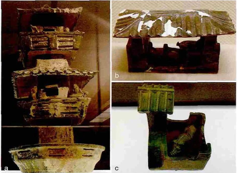 15 不用瓦当的东汉民间建筑陶器(a水阁,瑞士苏黎世瑞特堡博物馆藏;b磨坊,山西省芮城出土,山西博物馆藏;c猪圈,瑞士苏黎世瑞特堡博物馆藏)