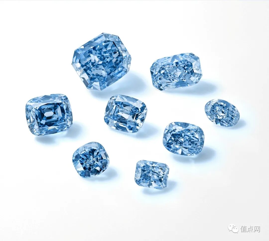 2020年11月,De Beers与钻石切割商Diacore从库利南钻矿购入5枚总重量达85.62克拉的蓝钻原石,每枚重9.61克拉至25.75克拉不等。经两年时间切割打磨,成为今天看到的8枚蓝钻。