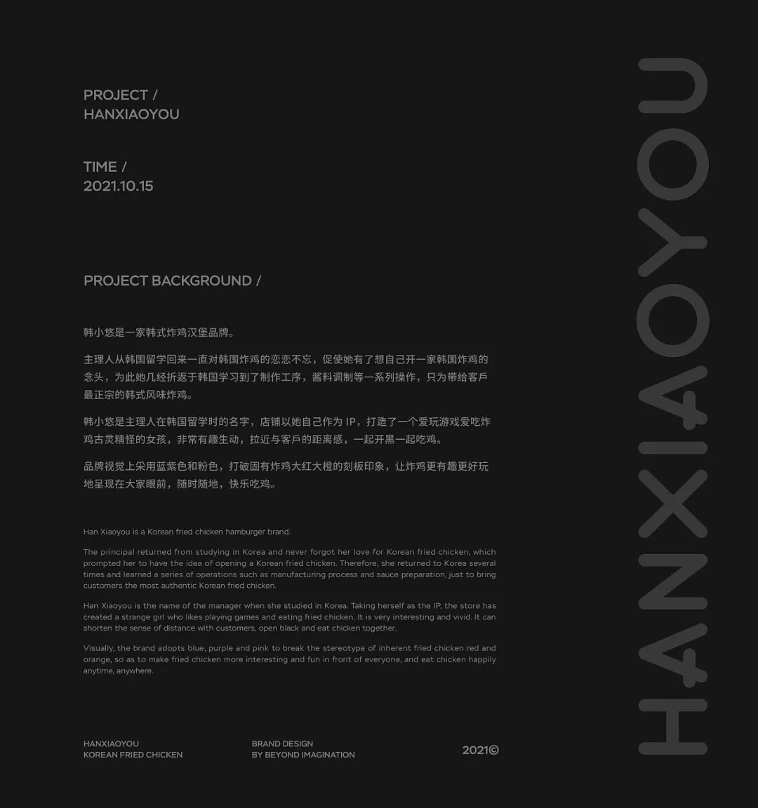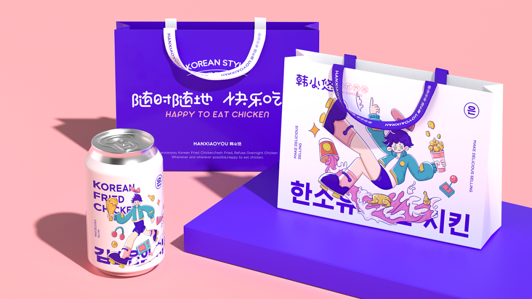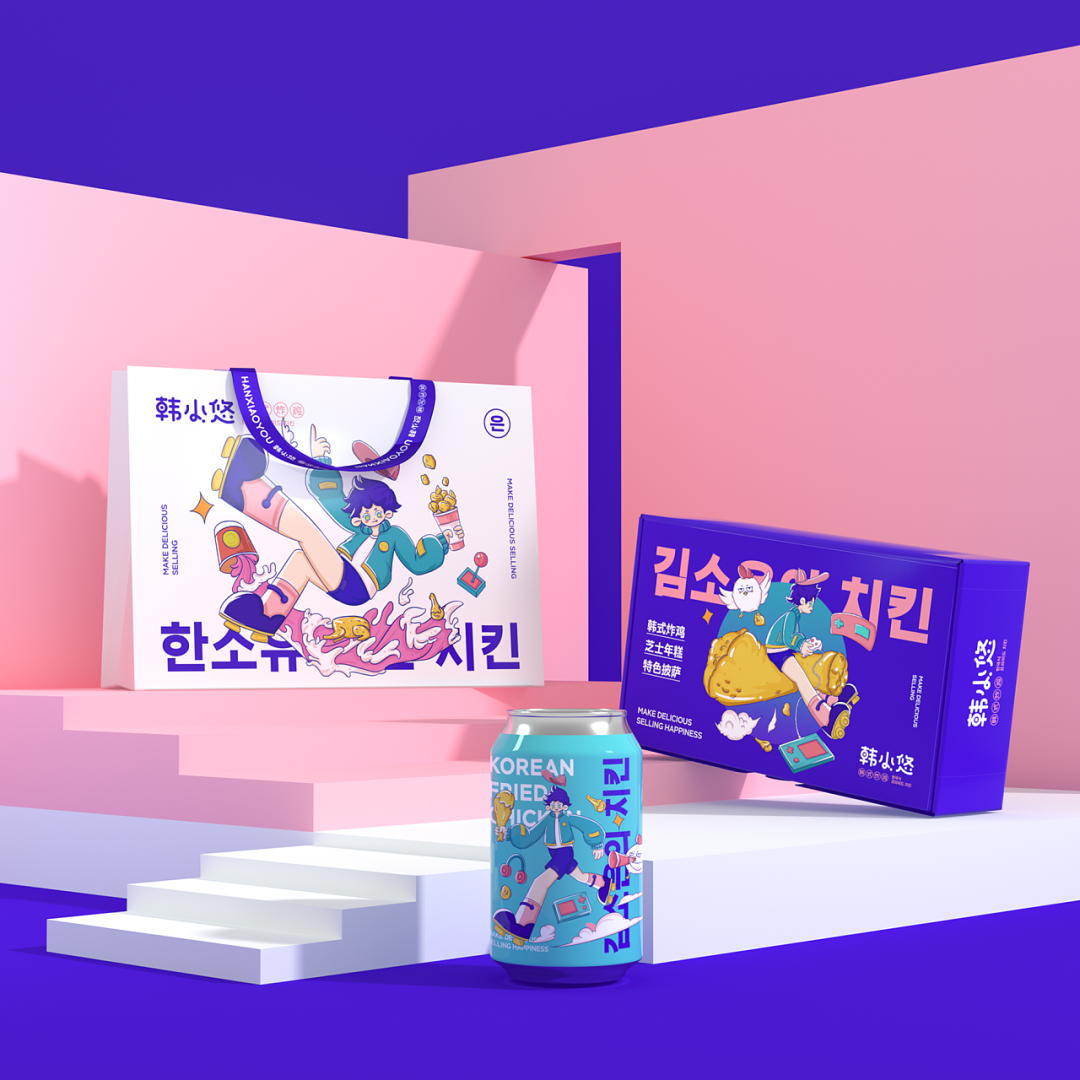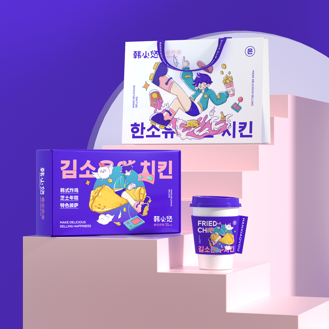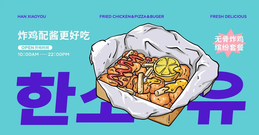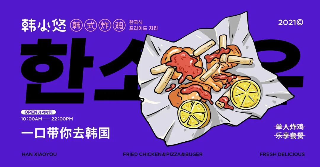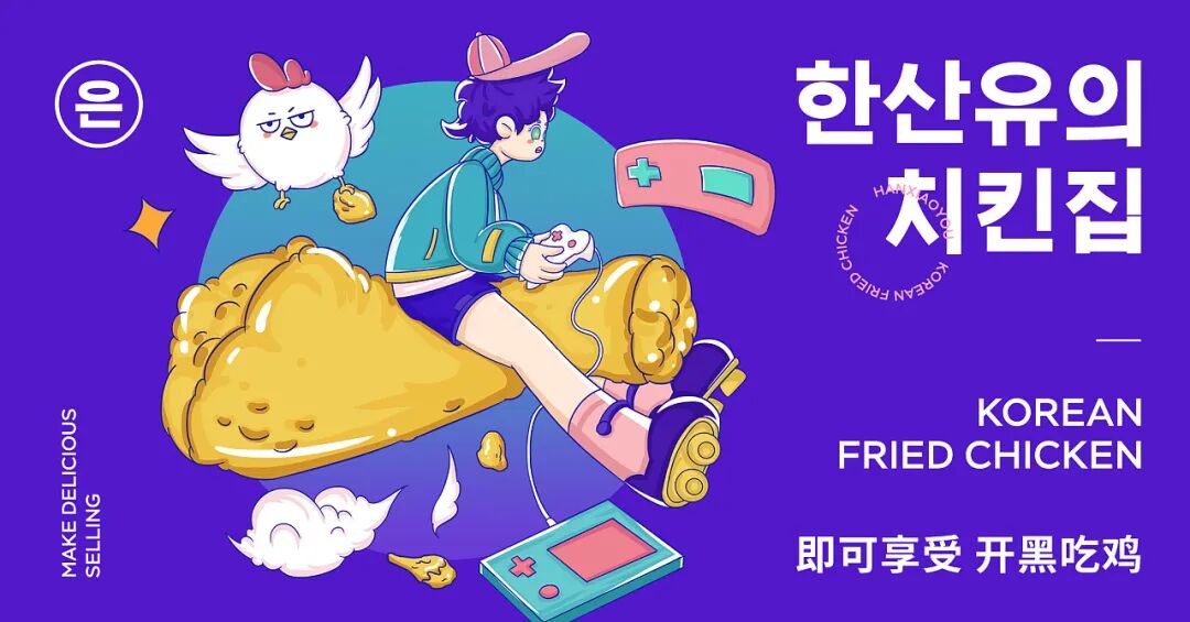 说起韩国料理,除了烤肉、大酱汤等风味美食,韩式炸鸡配啤酒,也是最有代表性的小食之一。韩小悠韩式炸鸡,主理人是一位从韩国留学回来的女生,对炸鸡的念念不忘,还为此几经折返于韩国学习到了制作工序,酱料调制等一系列操作,只为带给客户最正宗的韩式风味炸鸡。韩小悠则是主理人在韩国留学时的名字,店铺以她自己作为IP,打造了一个爱玩游戏爱吃炸鸡古灵精怪的女孩,非常有趣生动。