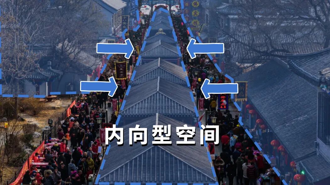 如今的鼓楼商业街,像是在两种力量拉扯之下形成的空间,一头是符合现代市民口味的大商场的力量,另一头是鼓楼为代表的传统民俗文化的力量。导致了鼓楼商业街内外商业的导向不一致,从而引起分野。