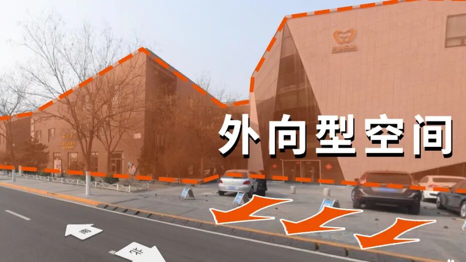 外向型的商业空间面向城市居民,所以其业态也必须向现代居民的生活所靠拢,这导致外围的业态较为驳杂,甚至还有口腔诊所,幼儿园这种完全脱离了休闲娱乐导向的业态,这显然是不协调的。