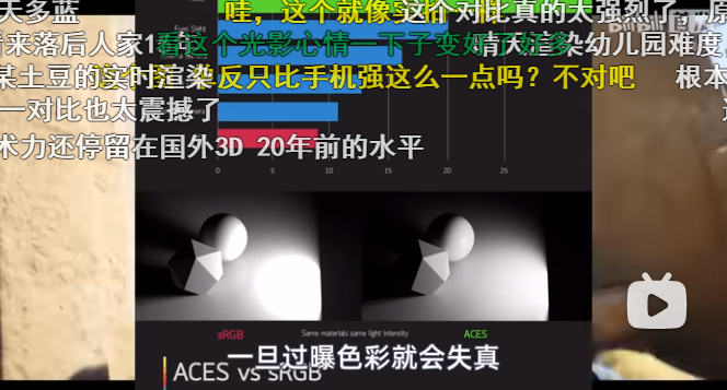 此外,还针对比如渲染管线的色彩空间、布料结算,部分模型精度不高,资产复用等情况进行分析,表示艺画开天似乎还用着Maya默认的色调映射,产出的色彩比较落后。