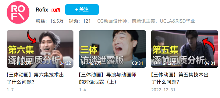 除了画风,在动画渲染上,前腾讯主美“Rofix”从专业的美术、技术等层面展示了《三体》动画的不足之处,以目前所出的前六集进行逐帧分析对比。