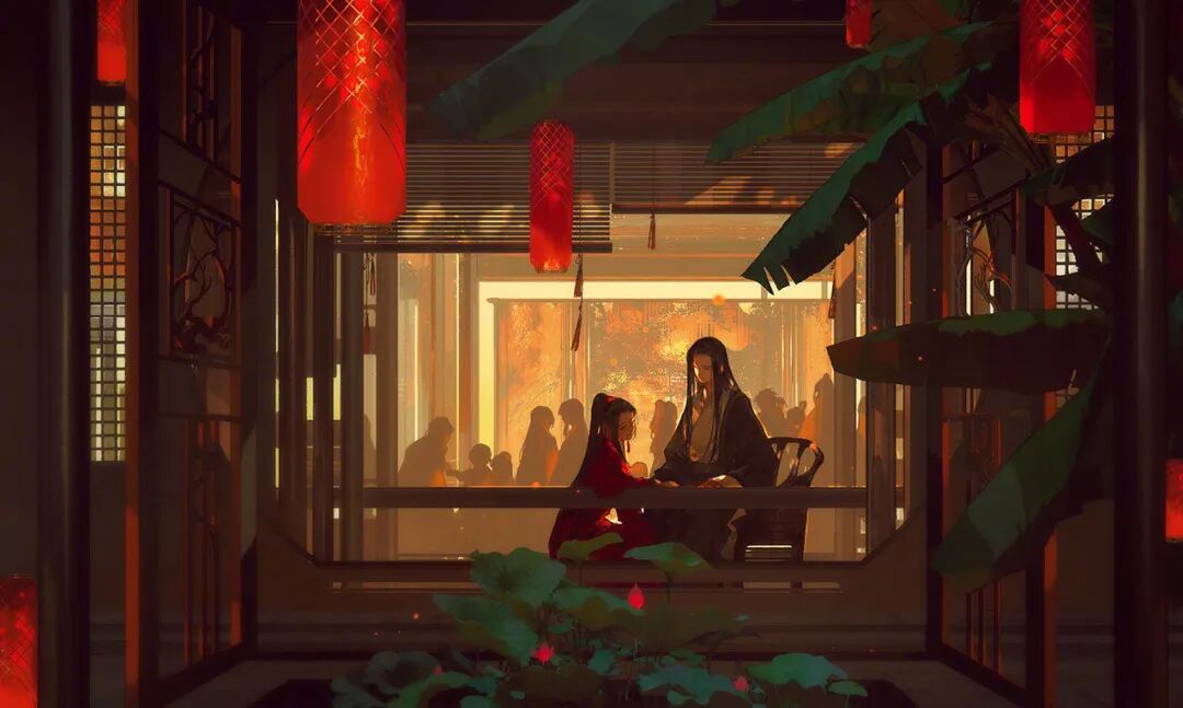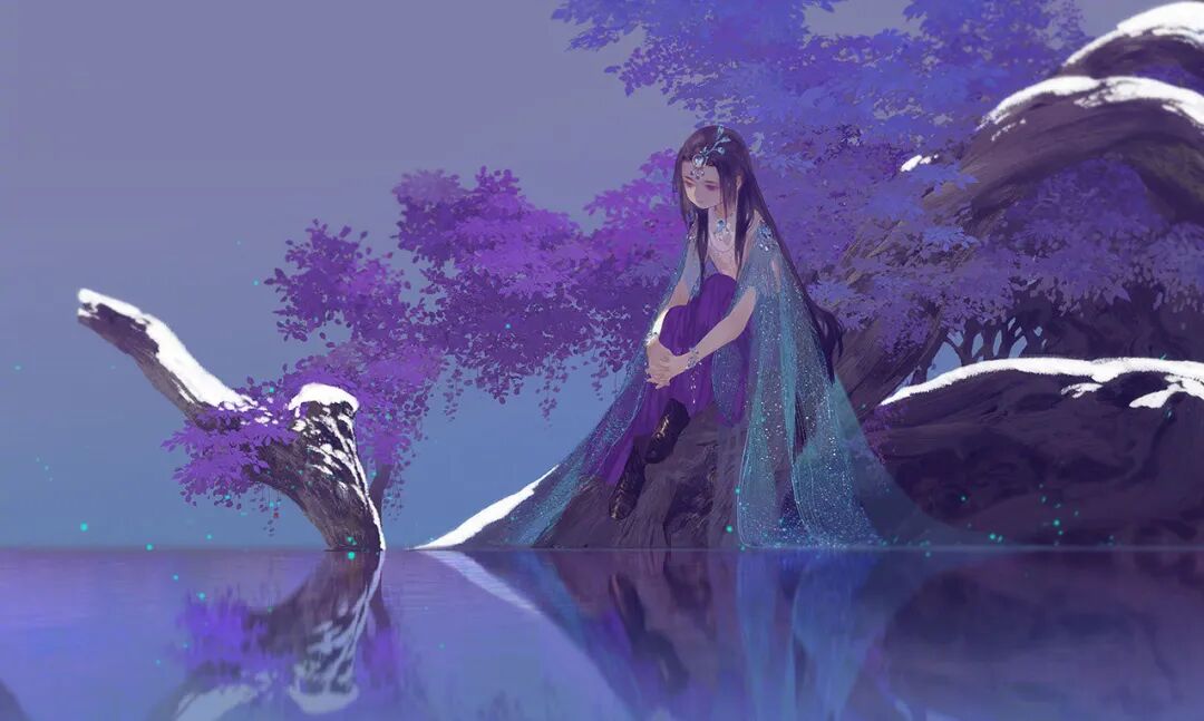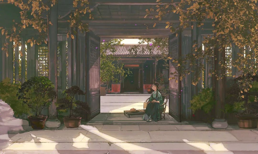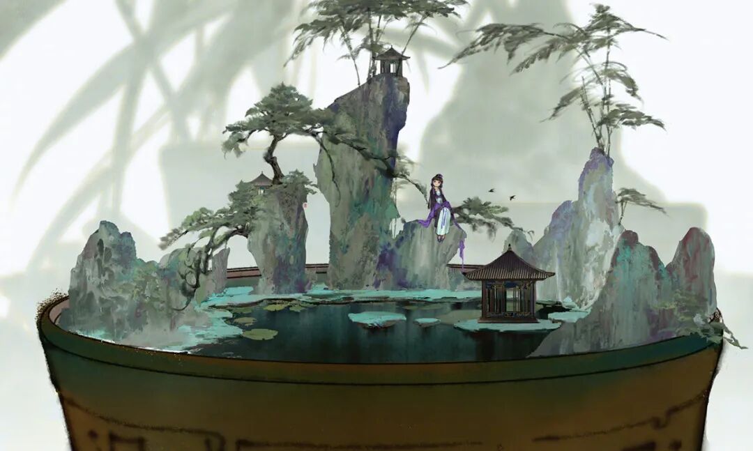 亭台楼阁、怪石嶙峋,少女亭亭立于荷花池上,天地无穷,却在一缸之中。高山流水的意味倾泻在画面中,扑面而来的孤寂感却渗入了心中。