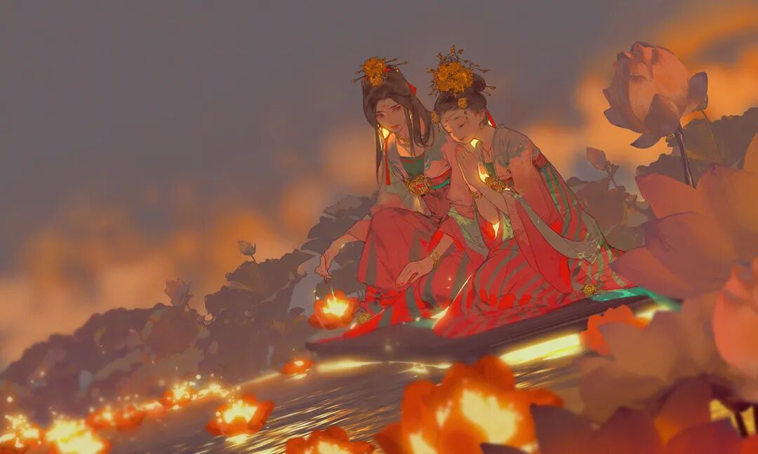 妙笔生花,处处精巧细腻,颜色时而淡雅、时而绚烂,美人、美景浑然一体,伊吹五月的插画,总能让人惊叹于她的一双神来之手。