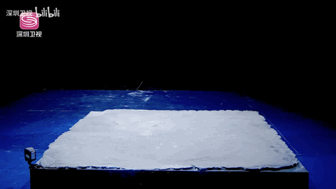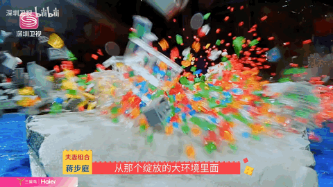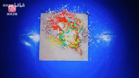 作品摔碎的那一刻,红、白的砖块飞出。