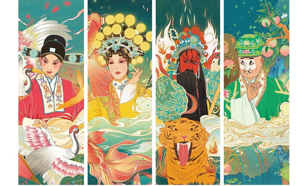 国潮风格并非是在画面纯粹堆积东方元素,元素背后的历史文化才是国潮的核心所在。你需要对中国经典细细挖掘,经过重启与再创,然后二次赋予其商业价值,这也就是国潮插画师的正确打开方式。