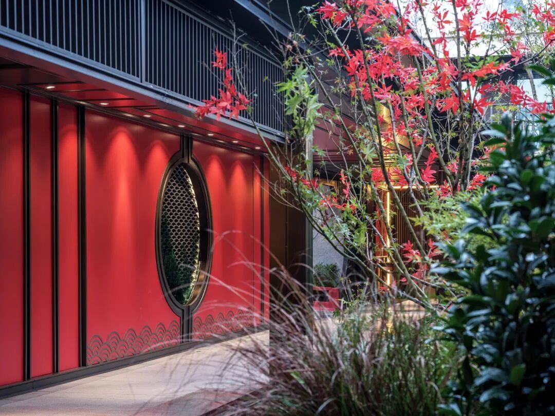 朱红桥点缀其中,碰撞之余享空间变化之韵律