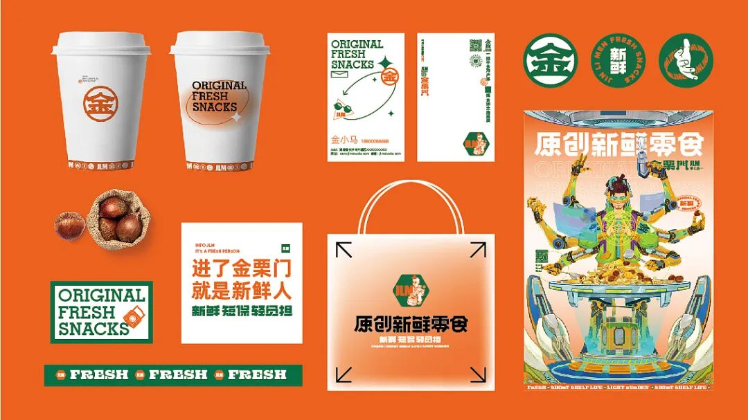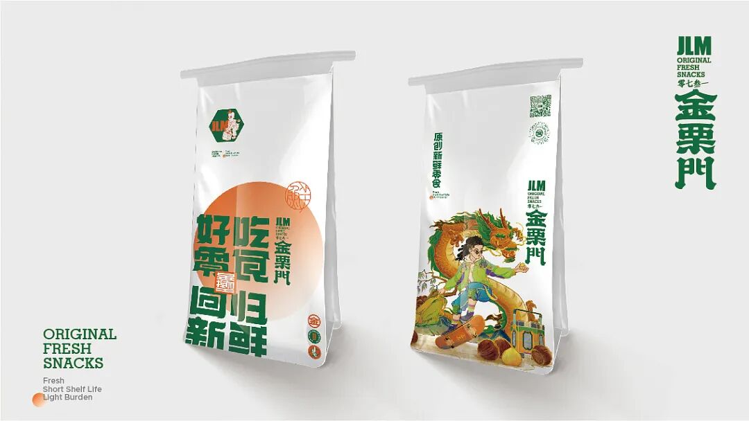 今天分享的这个【金栗门】零食品牌,起初主要以炒货为主,其糖炒栗子也是小有名气。这次的品牌升级,围绕国潮风格出发,忠于国而形于潮把握年轻客群,制造品牌势能,给消费者带来不一样的零食新体验!