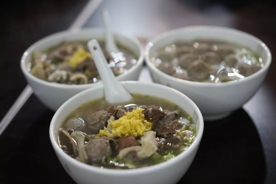 牛杂粿条是早餐的最佳拍档,圆圆滚滚的大丸子配上滑溜的粿条,蘸一蘸鲜咸的沙茶酱,无比惦念。
