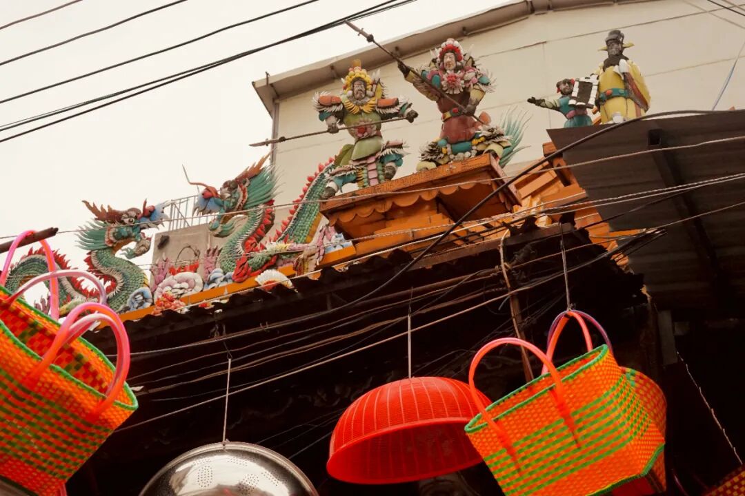 三山国王的小庙藏在热闹的街角,金光璀璨的城隍庙就在市井之中。