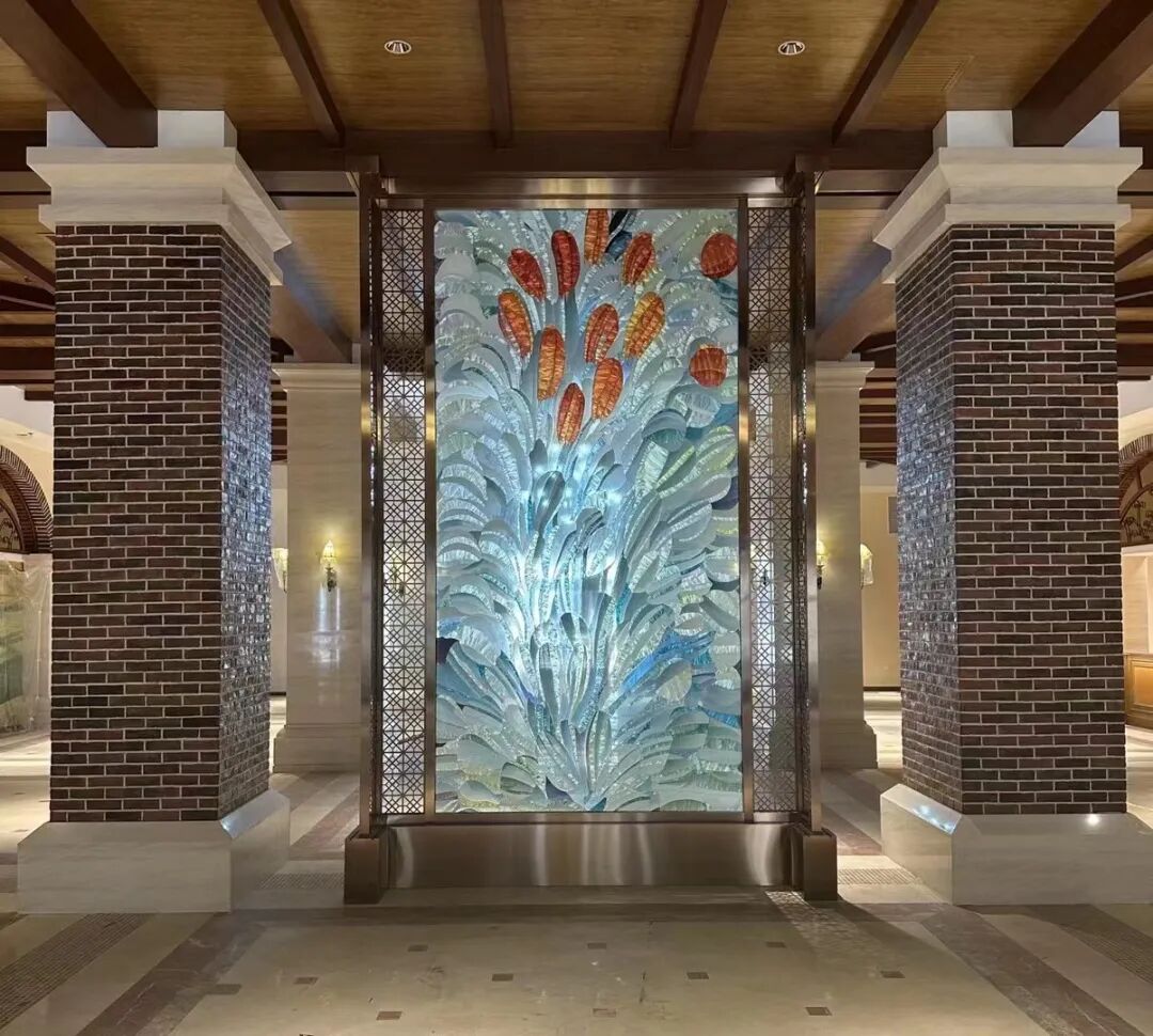 接下来让我们一起欣赏琉璃屏风带来的中国传统之美吧,目前琉璃屏风最大尺寸基本可以达到2米x7米。