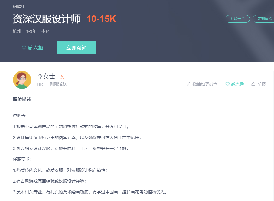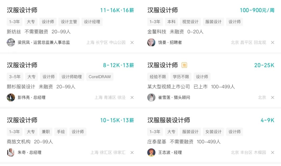 而像重回汉唐这种知名度比较高的汉服店铺,他们有自己专门的汉服设计师团队,这样子的设计师就是全职的。