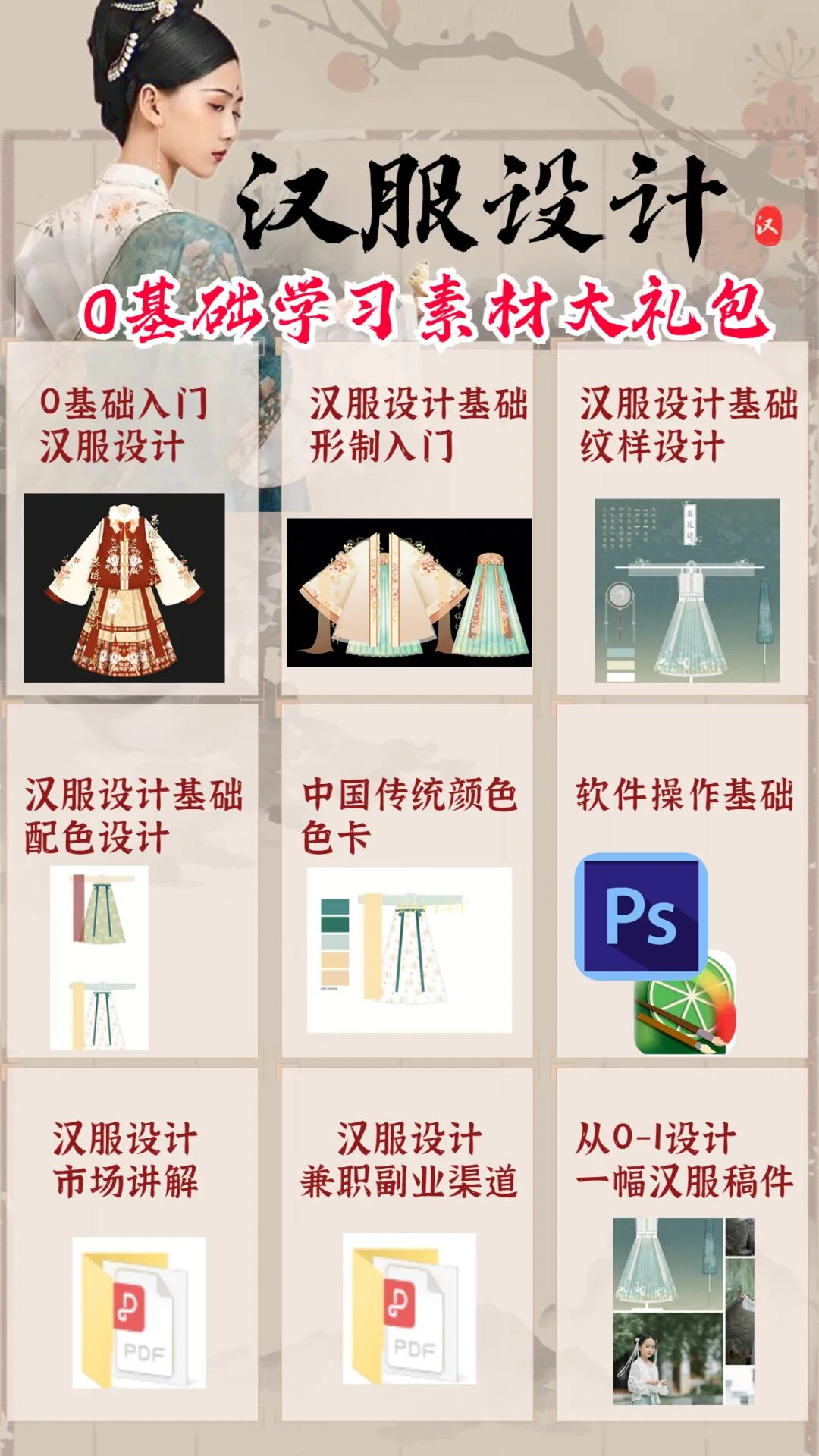 如果你在羡慕别人会汉服设计、高薪资、或者能接单,还不如自己跟上脚步也来动手学起来。这里有一份适合零基础的精品资料和课程送给你。