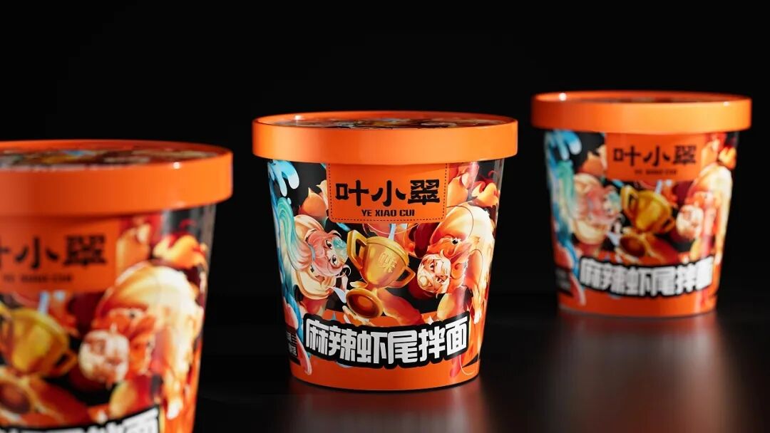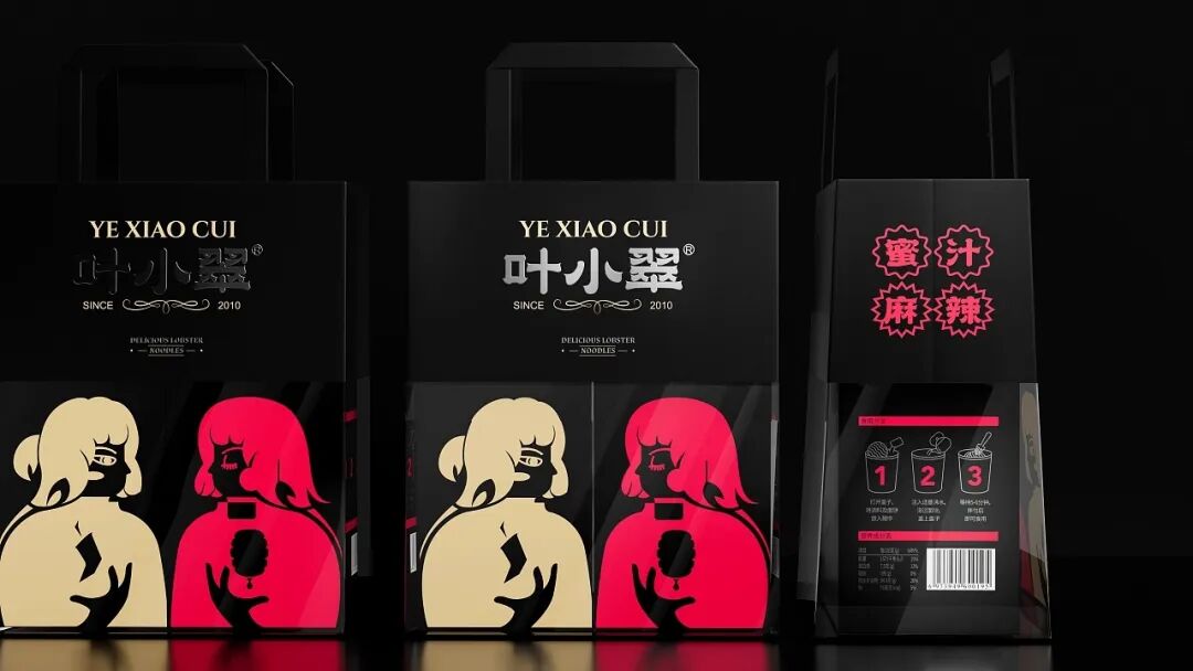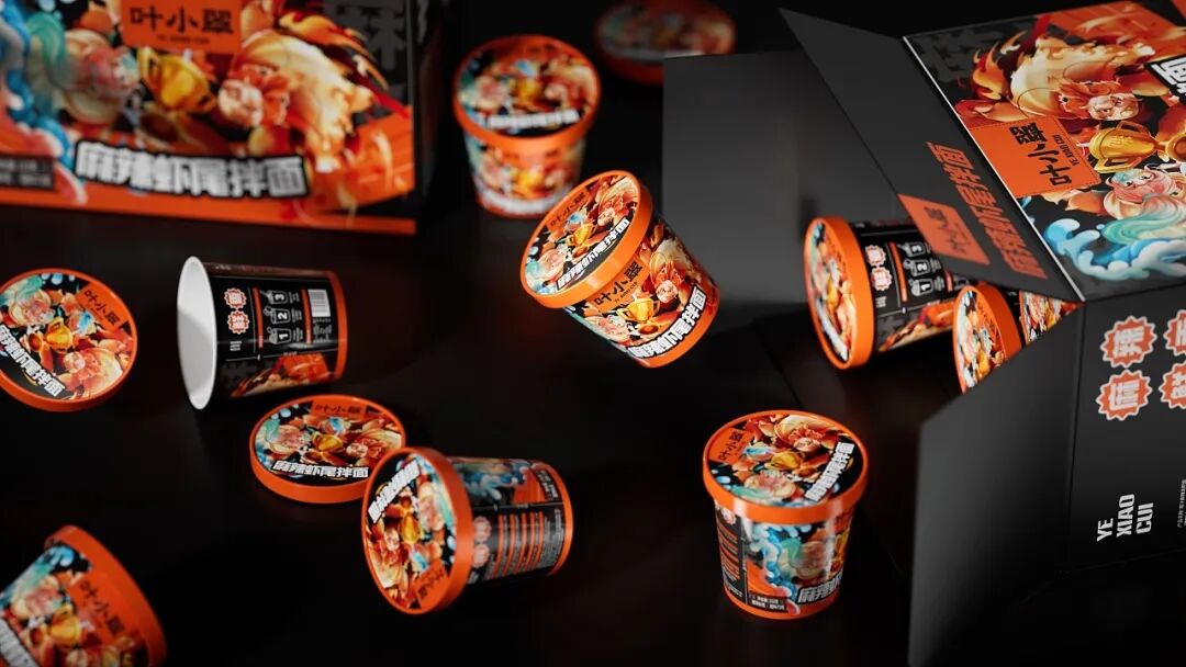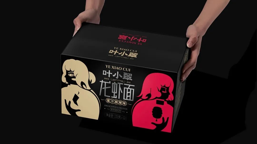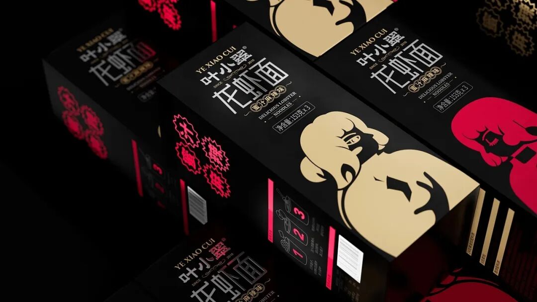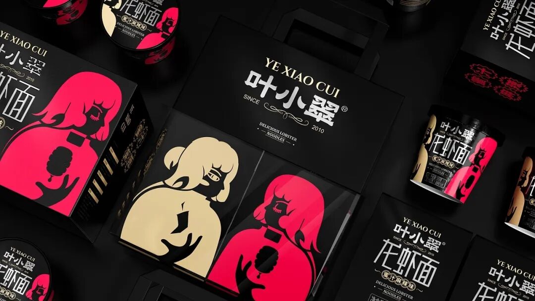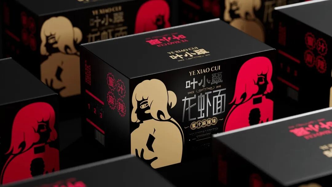 “幸福,就是饿肚子的时候能吃到一碗热乎乎的虾尾面”!叶小翠出品的泡面系列,便以小龙虾为特色,将泡面的香与龙虾的鲜、麻辣等口感相结合,刺激味蕾,让人回味无穷。设计上,整体采用国风插画的形式绘制出小龙虾威严、霸气的一面,辅以传统祥纹元素以及浓烈的色彩,打造强烈的视觉效果。