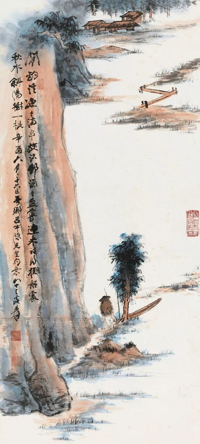 石涛还有一种独特的技能他有时反过来将近景画得模糊而将远景画得清楚而实。这等于摄影机的焦点,对在远处,更为象我们眼睛注视前远方,近处就显得不清楚了。这是“最高”现代科学物理透视,他能用在画上而又能表现出来 ,真是了不起的。所以中国画的抽象,既合物理,而又要包含着美的因素。