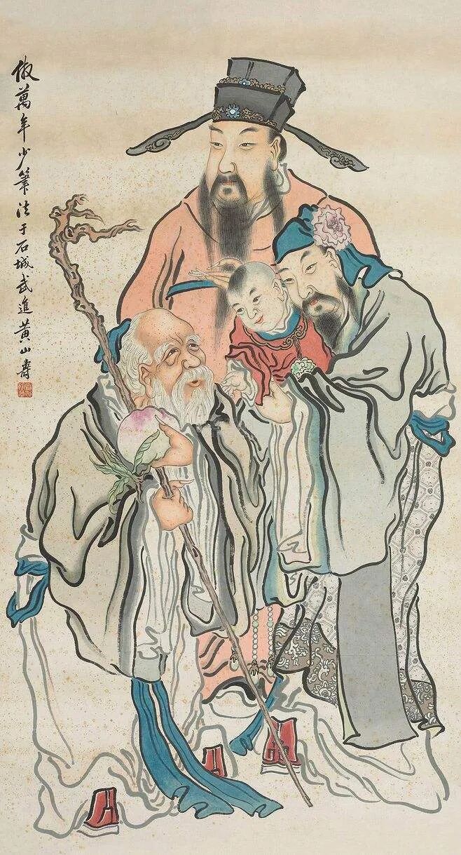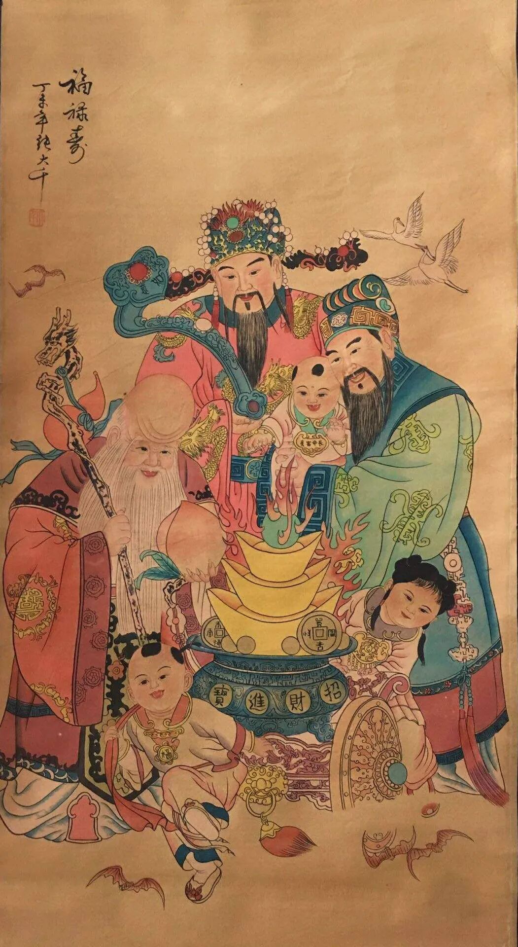 福禄寿三星,起源于远古的星辰自然崇拜。古人按照自己的意愿,赋予他们非凡的神性和独特的人格魅力。由于他们在汉族民间的影响力,封建政府曾借助其用于实施王道教化,道教也曾对他们大加推崇,以招徕信众,扩大自己的声势和影响。虽然他们后来失去了高高在上的神威,却也因此获得自由,走入寻常巷陌,千家万户,成为古代汉族民间世俗生活理想的真实写照。