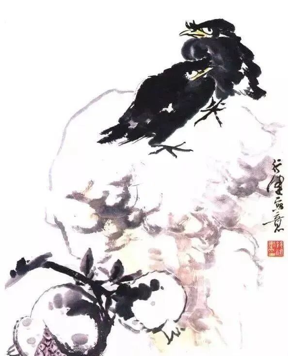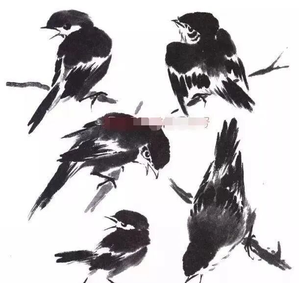 干货2024-02-07 【国画花鸟】写意鸟类的画法和步骤详解 水墨写意花鸟画基本画法图文教程, 写意鸟类的画法和步骤详解 鸟类的观察,禽鸟在中国画中又称为「翎毛」,可区分为水禽与山禽两 大类,依其生活习性,又可分为涉禽、游禽、猛禽、攀禽、鸣 禽、雉禽等类,各类的特微与习性如下: (一)涉禽:栖於浅水中捕食鱼虾,它的嘴、颈、脚都很长。例如鹤、鹳、鹭鸶等。 (二)游禽:喜欢在水中游泳,嘴扁平,脚短,趾间有蹼,多 捕食鱼虾和小虫。例如海鸥、野鸭、鸳鸯、雁、信天翁 等。 (三)猛禽:双翅强而有力,嘴形如勾,脚夷尖锐,性情猛悍 ,专门捕食小动物。例如鹰、鹫、鹗、隼等。 (四)攀禽:多数上嘴钩形,下嘴较短,足趾二前二後,能用 夷攀抓在树干上。例如鹦鹉、啄木鸟等。 (五)鸣禽:喜欢鸣叫,一般小鸟多属此类。例如维、莺、画 眉、伯劳、黄鹂、八哥等。 (六)雉禽:属於栖地类禽鸟,身体较大毛色美丽,尾长,嘴 形与鸡类似,多生长於山林矮木丛中。例如雉鸡、锦鸡 、长尾雉、孔雀等。禽鸟是卵生,故其身体(不包括头 、颈、脚、尾等部位)呈蛋形。因生活环境与习性不同 ,其嘴、脚翅及尾也各有不同的比例与特微,一般而言 ,水禽(涉禽、游禽)大多嘴长而尾短,山禽(鸣禽、 攀禽、雉禽)大多嘴短极尾长,嘴勾者食肉,细尖者食 虫,嘴长者食熊虾,食壳者嘴粗而厚,成圆椎形。能长 途飞行的鸟翅膀大都较长,且发达,水禽中多长颈者, 以便迅速出击,啄夹鱼类。此外如头形、眼精的颜色及 位置的高低,各有不同,也须把握其特微。 鸟类遍体生长羽毛,细密的绵羽有保温的作用,此外也有 半绵羽,以及许多形状不清楚,层次繁多而叠列成一大片的感 觉。另一种是羽片形状较清楚,如翼、尾的羽毛,皆有详细的 名称,应仔细观察不同部位的羽毛形状及其叠列的关系,以求 熟悉鸟类羽毛的组织与秩序。 此外尚须明白禽鸟的雌雄,禽与兽绝大部份都是雄的较美 ,少数雌雄的羽毛一样,但是雌鸟总比雄鸟略小,鸟的翼及尾 ,超左或超右是雌雄相反;雌鸟的右翼及右尾翼在上,雄鸟的左翼及左尾羽在上。鸟类的喜、怒、哀、惊,表现在翼、尾及 姿态上,亦有不同。 写意画鸟的顺序 先厾出背羽,再添翅尾。画出头部。勾出嘴眼和胸肚线,最后补足。 水墨画鸣禽的各种姿态 练习画鸟可先从水墨入手,用墨色来表现出深浅层次的各种形态,初画鸟难于掌握准确姿态,则可以先用淡铅笔或炭条轻勾出轮廓后再画,只要反复,熟能生巧,就可以随意发挥了。 水墨鸣禽画法 画鸟难画足,因鸟足是全身重心的支撑点,鸟足位置不当,会使全身失去平衡。所以鸟足都是在最后添上。画时要审视鸟体的气势后再选择最佳位置添足,因此在画足时应谨慎落笔。 平身踏枝 开始画鸟应注意各部分位置的正确性,比例也不能失调。画法要严谨,从写实的基础入手逐步过渡到写意。有了扎实的基本功,才可能逐步攀登艺术高峰。 敛翅将歇 画鸟也要注意鸟的某些细微动作的刻画,因为正是这种细微动作往往传达了对象妙不可言的神情,这需要在平时的观察中一一默记在心。本图将鸟头微垂,眼睛注视着树干,刻画出它敛翅栖歇的悠闲神态。 写意水墨鸟的各种表现 写意画鸟不必拘泥于鸟羽的真实性,只须将它最显著的特征表现出来。写意画的用笔要简练肯定,用寥寥几笔就可刻画出鸟的形神特征,这样就达到写意画的目的了。 两只喜鹊的画法 画两只并列栖枝的鸟,可用正和背的不同姿态来增加其变化。喜鹊的尾羽较长,在其两个长尾相交处要注意虚实,不能形成明显等角度的叉形。 同形鸟的变化 画两只形态雷同的鸟,须在墨色的深浅和动作的细微处力求变化,避免重复的感觉。 变形的鸟 写意画鸟可在原形的基础上予以夸张变形,以增强鸟的秩拙感,使其更具强烈的质朴可爱的神态。写意画下笔时定要泼辣果断不涂不改,使笔痕井然,墨色透明而耐人寻味。 站地的鸟 画站地的鸟,鸟爪须分开伸直才有力量,三鸟之间的姿态须有变化,而且还要有所呼应,产生情趣。 飞鸣的鸟 画多只飞鸟,展翅形态须有区别,要尽量避免雷同。 群飞的鸟 画群飞的鸟,除了姿态动作的变化以外,更要注意其聚散位置和安排,避免鸟距相等。 群栖的鸟 画群栖的鸟须有呼应,但不需每只都作呼应,在一组鸟中其头部方向应一致,方向一致气势就顺;另一组再作对应气势,一群鸟就相互贯通而融为一体。头部方向相反容易出现零乱和不相关的现象,影响画面整体效果。 单只鸟的位置 单只鸟可以放在画面纵线的中间,但不能放在纸的中心位置上,否则构图就难以安排,应予避免。 景忌“挑担”式 画鸟后如在枝的两端配景,须有轻重。一般说向上出枝,重心在下;下垂出枝,重心在上。两端平均则会象挑担一样,所以花鸟画中有“最忌挑担”之说。 鸟主景副 花鸟画中的配景一般都以鸟为主,鸟主景融以突出主题。配景过于强调会有喧宾夺主之感。 鸟体留白 水墨画鸟要增强鸟体的明暗反差时,留白是十分有效的方法。留白的块面须集中,如留白大小相似就会显得平淡呆板,失去美感。 水墨示范作品 水墨画鸟不必过于注重刻画鸟的种类,而要着重刻画鸟的神态,要利用笔情墨趣把花和鸟的动静表现得审完气足。 下垂式 本图的鸟和景全是下垂式,鸟翻身俯视作寻觅状,与藤枝飘动相呼应,可增加动感和情趣。 横倚式 横幅式的画,常用横倚式的物象来构图,但横倚之物须