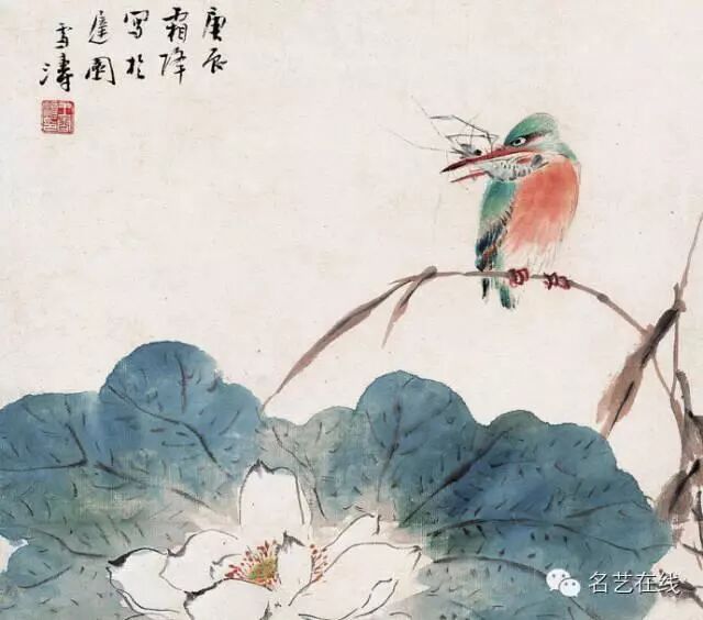 夸张的手法在花鸟画中使用最多。鸟类由于眼睛的视角广阔和体态的灵活,一般眼球的转动是很少的。但八大山人的鸟,眼睛是会说话的,这在他生活的时代,或可说是代他自己在说话吧。我画过的许多鸟,眼眶往往大于真实,眼球也随视线而转动,在与前者不同的意境中,则体现了生机,在情感上具有了一种拟人的味道。有些人很重视夸张,但却做得过分,看上去不舒服,这在于没有了解到,夸张是要根据意境创作出发,仍是借助于形态而传神的,夸张与漫画不可等同。