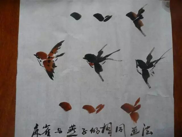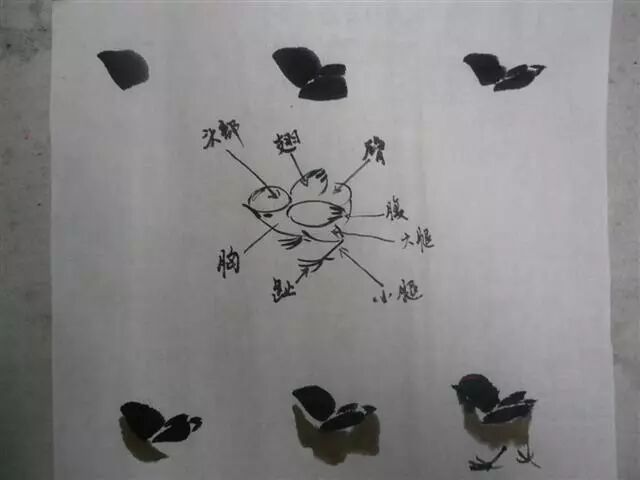 我们看看小鸡和麻雀对比,用笔是一样的,我们再看看麻雀与小燕子的对比