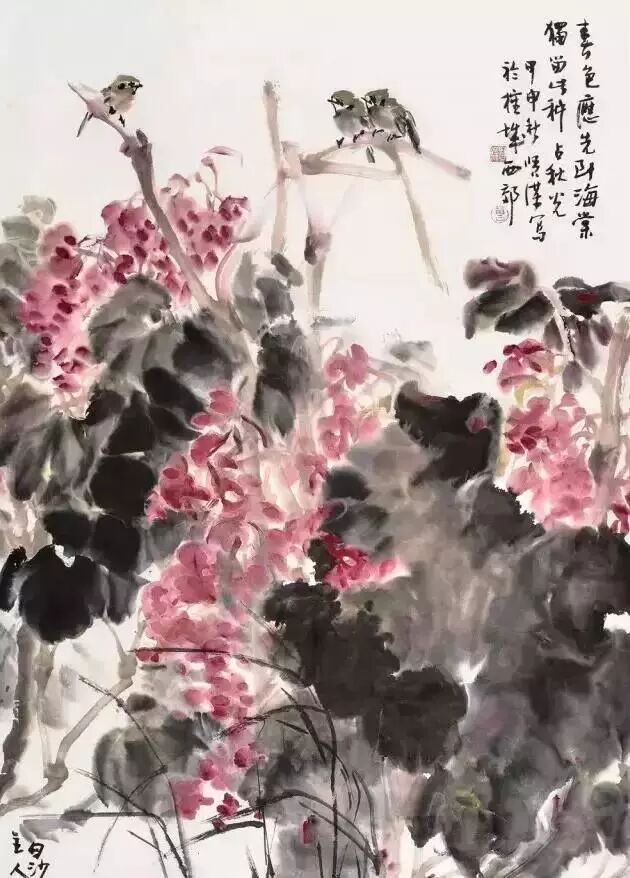花鸟画是以描绘花卉、禽鸟来表现自然界的生命力,体现欣欣向荣的生气,从而给人以健康的艺术感染。它描绘的对象是大自然,因此培养对自然界的生命力,训练观察力的敏锐是主要的。不少前人也是这样做的。传说一位画家,为了体验草虫的形态,经常趴在草丛中观察,以至露水打湿了衣裳,可见观察之认真。我小时生活在农村,对自然界中的一情一景十分偏好,幼时养成的观察和写生习惯,对我一直影响很大。要认真地了解物象的结构、特点、习性和生活规律,画时才能做到心手相应。特别应当提到的是,有些人对所谓“写意花鸟画”有一定的误解,以为“写意”者,不必求其形似,只图练习笔墨,这是把对现实的观察、提炼、概括与不必研究对象的生活习性和结构特点混为一谈,其结果便是把生动、多样、变化丰富的大自然,不是画得千篇一律,就是非驴非马。有些画出自不注意观察人的手笔,是一眼可以看出的,这是画不好画的。花鸟画的源泉是生动的大自然,而不是他人的笔墨,提炼与概括也要源于对自然的观察,因此对自然界的观察是训练心眼的基本功。