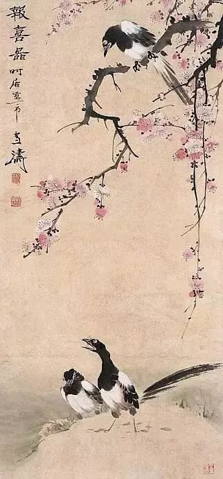 刻意表现自然界的生机勃勃,抓取生活中的瞬间来表现动势,是意境创作的重要因素。飞鸟固然有着千姿百态,但欲飞将落的瞬间,可能会使人想到一种闻声索侣或觅食才归的意趣。寓动于静则是含蓄表现动势的另一种方式。踞伏草中的雏鸡动态很小,但在空灵数笔的脖颈上和转折有力富有弹性的背部曲线上,蕴藏着力量,不难使人想象,在它灵活的躯体上可能预示着的动势。总之,感人的意境是要作者倾注感情去探索的。