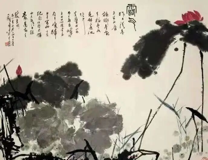 潘天寿 指墨《红荷》