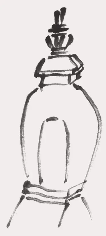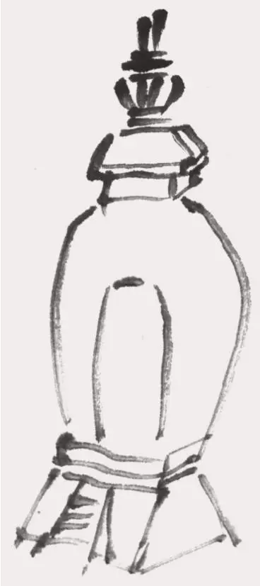 蘸取重墨,绘制塔尖。墨线要短而敦实。