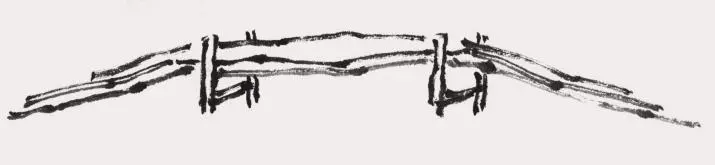 勾勒出桥面,墨线略有转折可表现出木质的坚硬感。