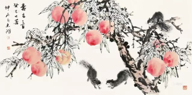与禽鸟的赋采法略有不同,首先白描后以淡墨分染,然后以颜色第二次分染,干后第三次铺色,接着第四次梳毛,第五次铺色梳毛(丝毛)是化翎毛(或畜牲)所常用。