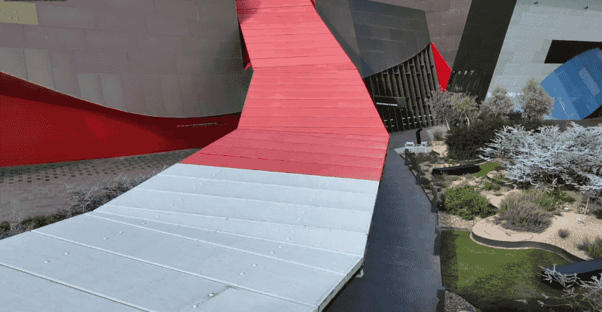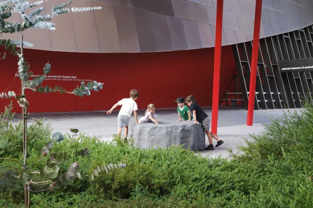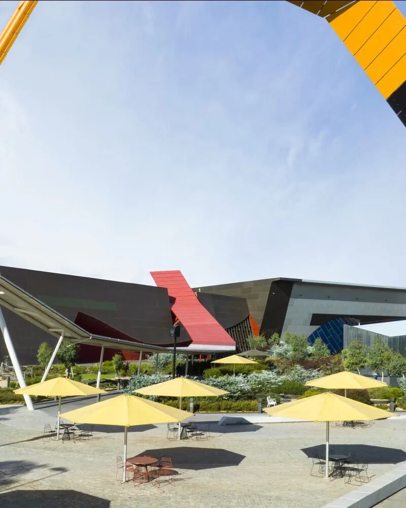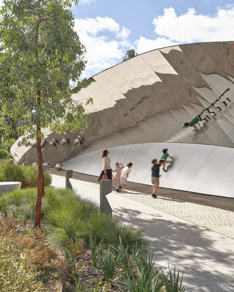 一面引人入胜的互动式70米长的不锈钢反光弧形 "Welcome Wall "将游客引向博物馆,而鹅卵石路上的标记牌则指向重要的原住民遗址。